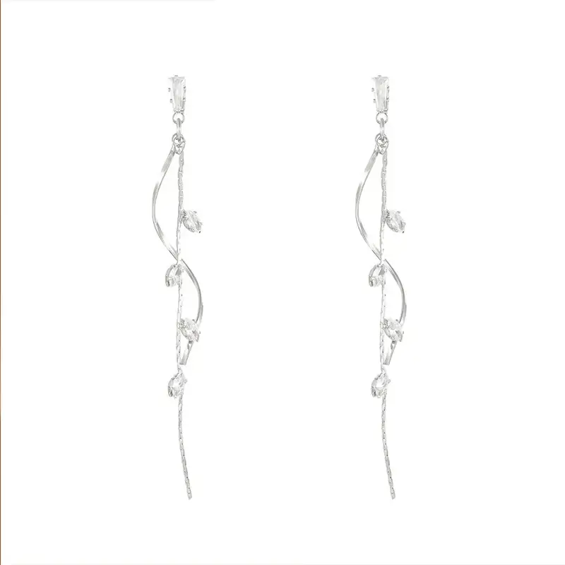 الصفحة الرئيسية اثاث أقراط متدلية فضية بتصميم أوراق وكريستال
